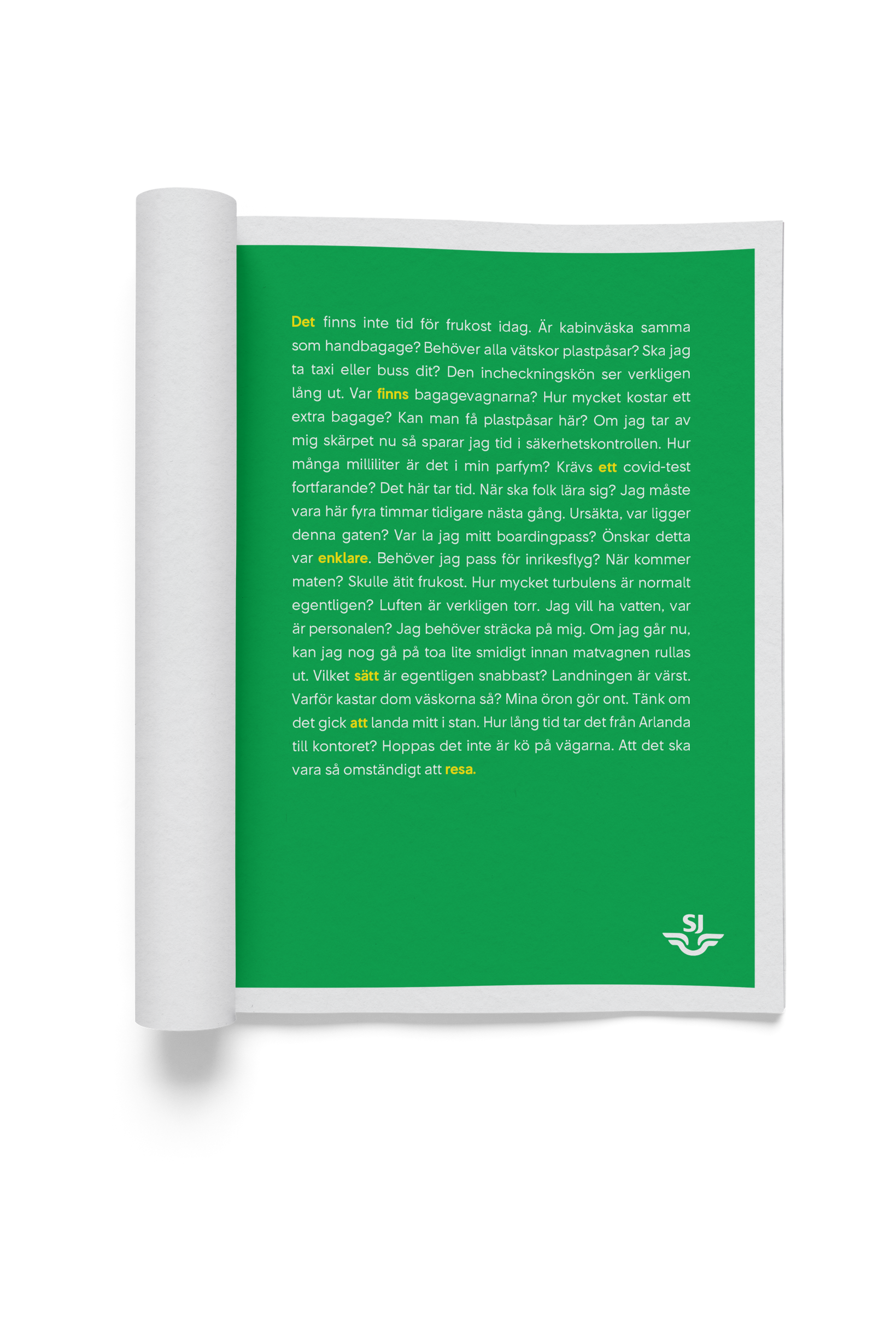 Skapa en helsidesannons som lyfter tåget som ett smidigare alternativ att resa med.